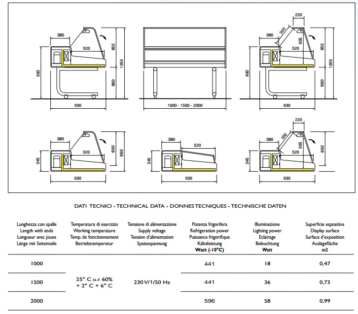 Technique Groupe logé. Froid Statique. Fréon R290 Contrôle électronique de la température: +4°C/+8°C. Dégivrage automatique. Décharge direct de l`eau de condensation.