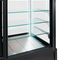 Technique Groupe logé. Froid VENTILE. Gaz R290 Contrôle électronique de la température: +2°C/+6°C. Dégivrage automatique Cuve d`exposition profondeur 580mm en acier peint NOIR Struture vitrage THERMOPANE 3 Etagères intermédiaires en verre profondeur 2x350mm + 1x300mm Eclairage LED sur les côtés