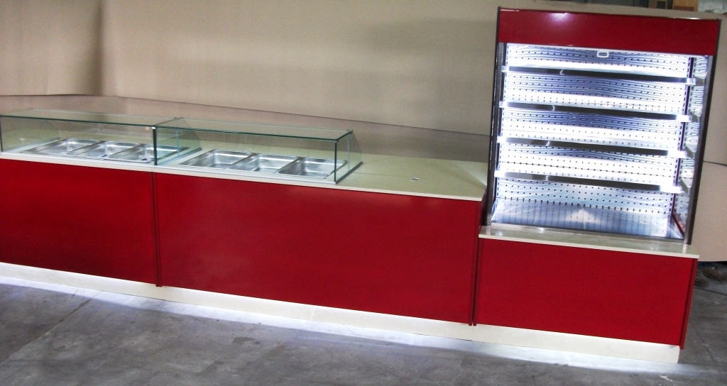 Un module Bain-Marie Longueur 1m70 - Un module Saladette réfrigérée Longueur 2m00 - Un module Vitrine réfrigérée Self Service Longueur 1m20 Lien vers tout les modules d'agencement: Modules d'agencement ligne RGTE ">